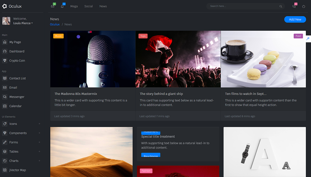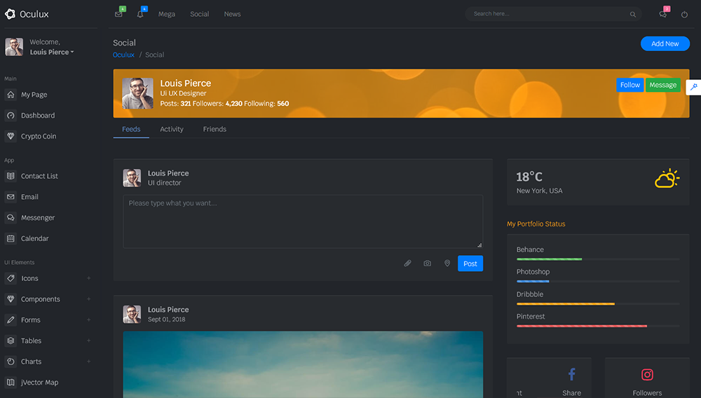 Oculux is a popular open source WebApp template for admin dashboards and admin panels. It’s responsive HTML template, which is based on the Bootstrap 4X framework. It utilizes all of the Bootstrap components in design and re-styles many commonly used plugins to create a consistent design that can be used as a user interface for backend applications.
